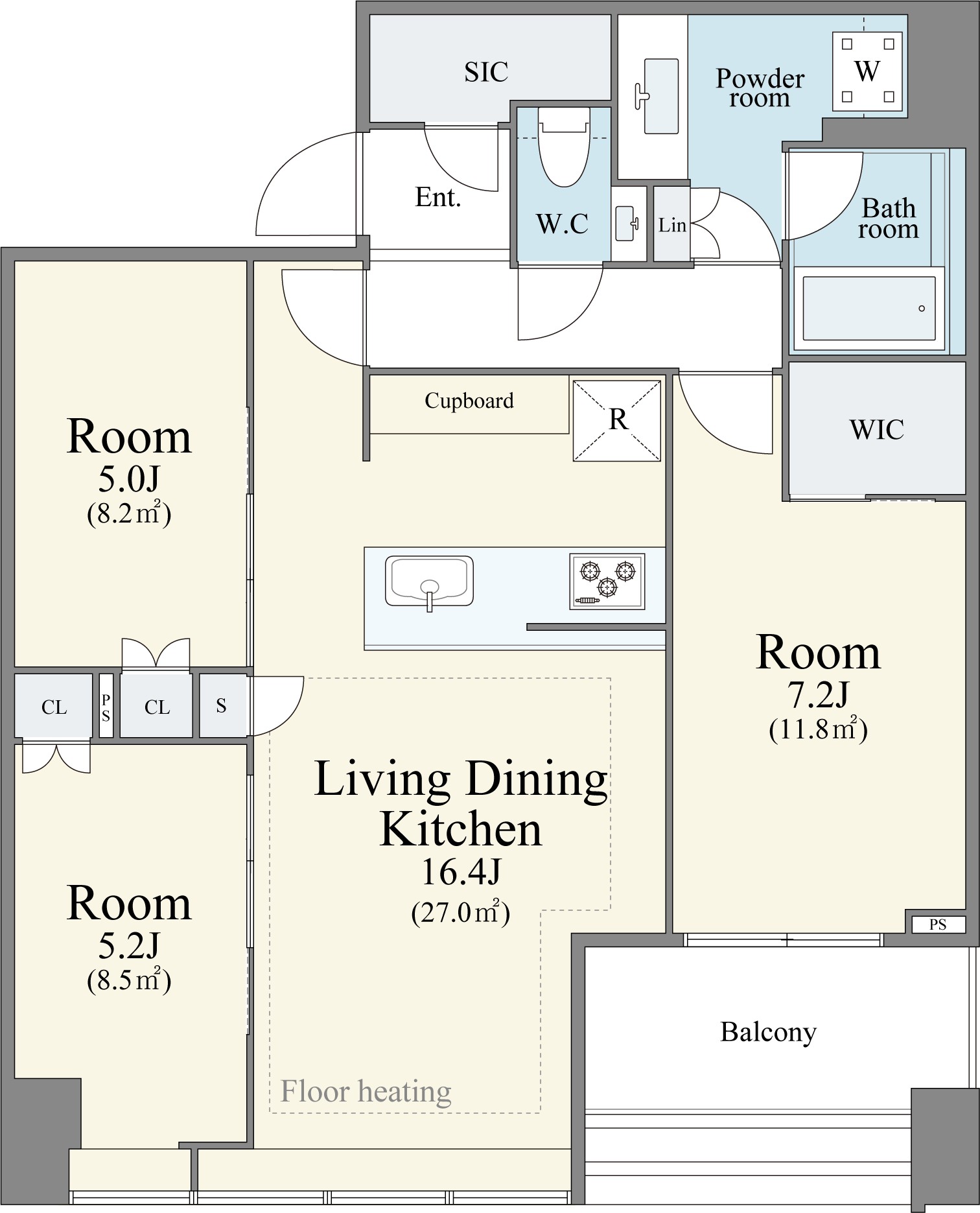 2. 房間格局: 3LDK + 步入式衣櫃+步入式鞋櫃