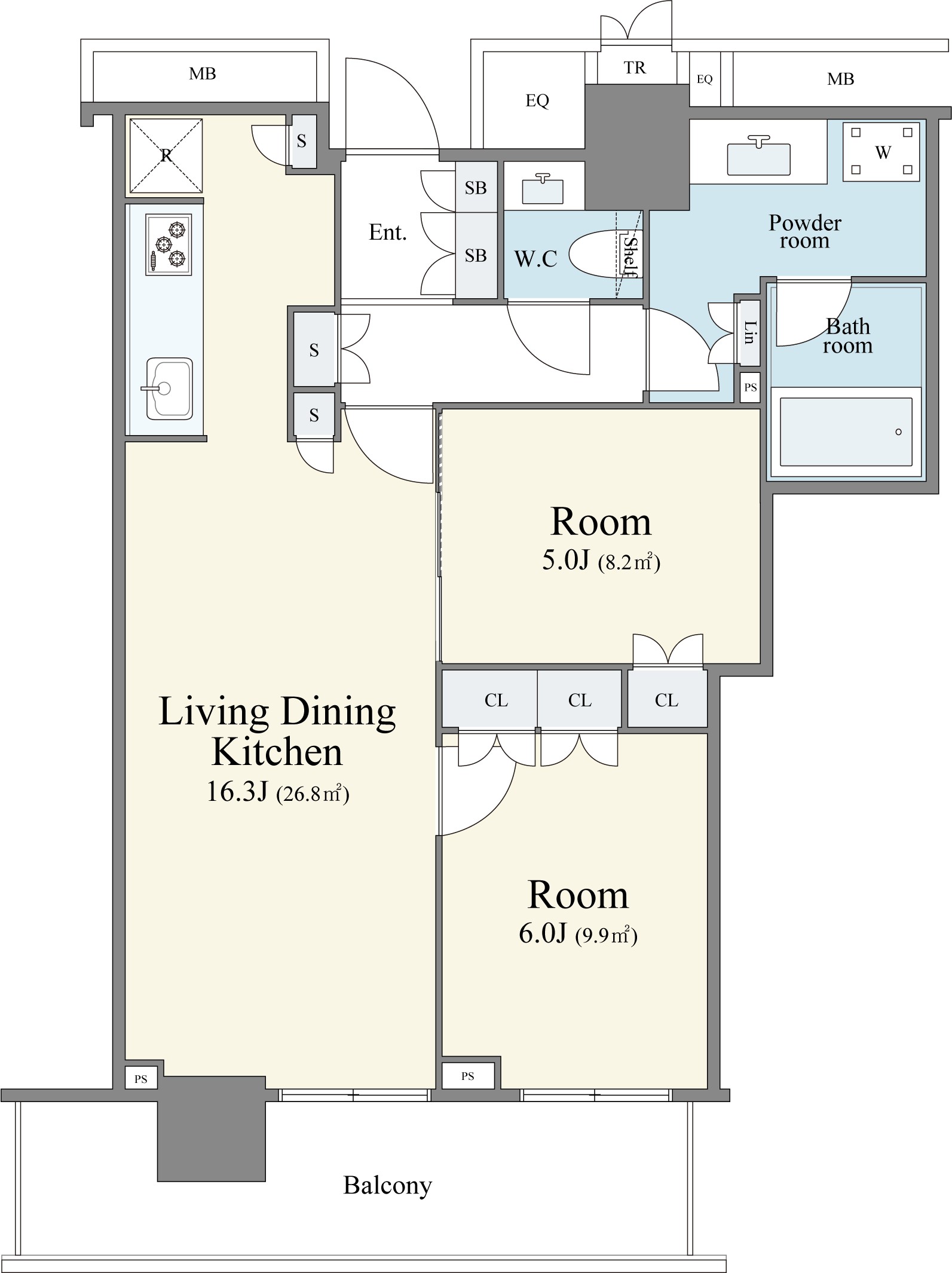 暸望海景的高層多戶住宅! 風景好! 朝東的2LDK
