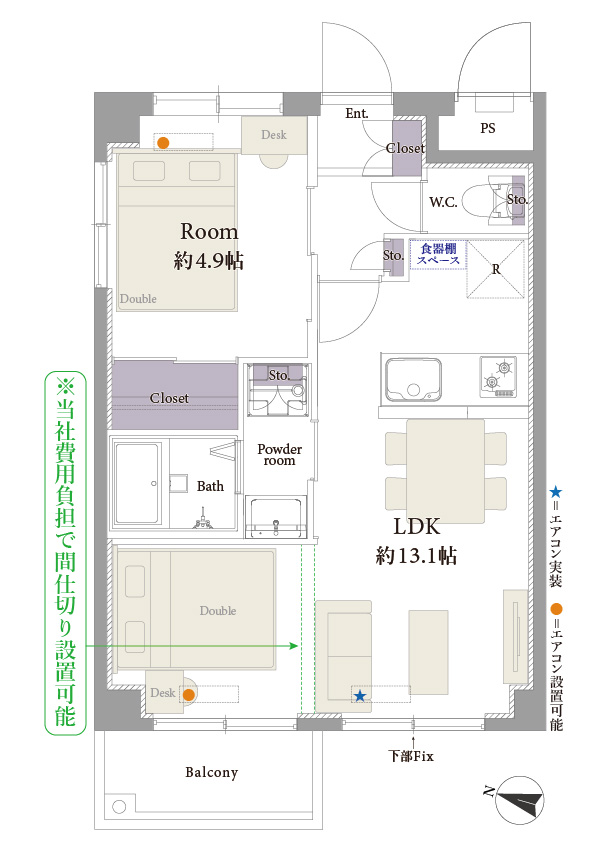 1. 2019年完成大規模修繕1LDK,骨架翻新