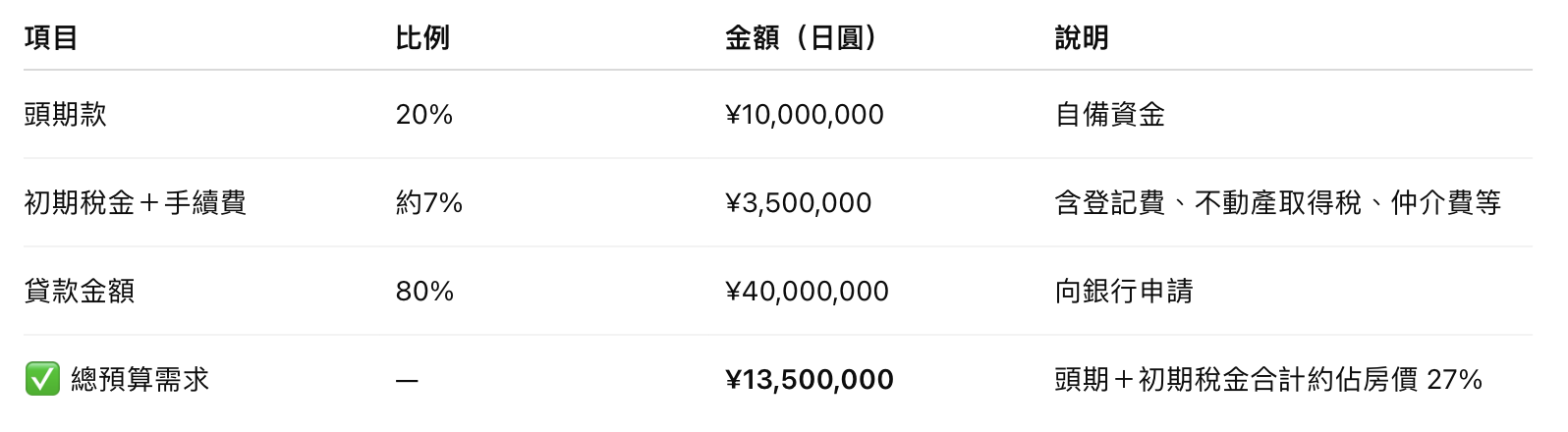 在日本買房,不論是自住還是投資,頭期款+初期稅金 才是「真實的購屋總成本」。